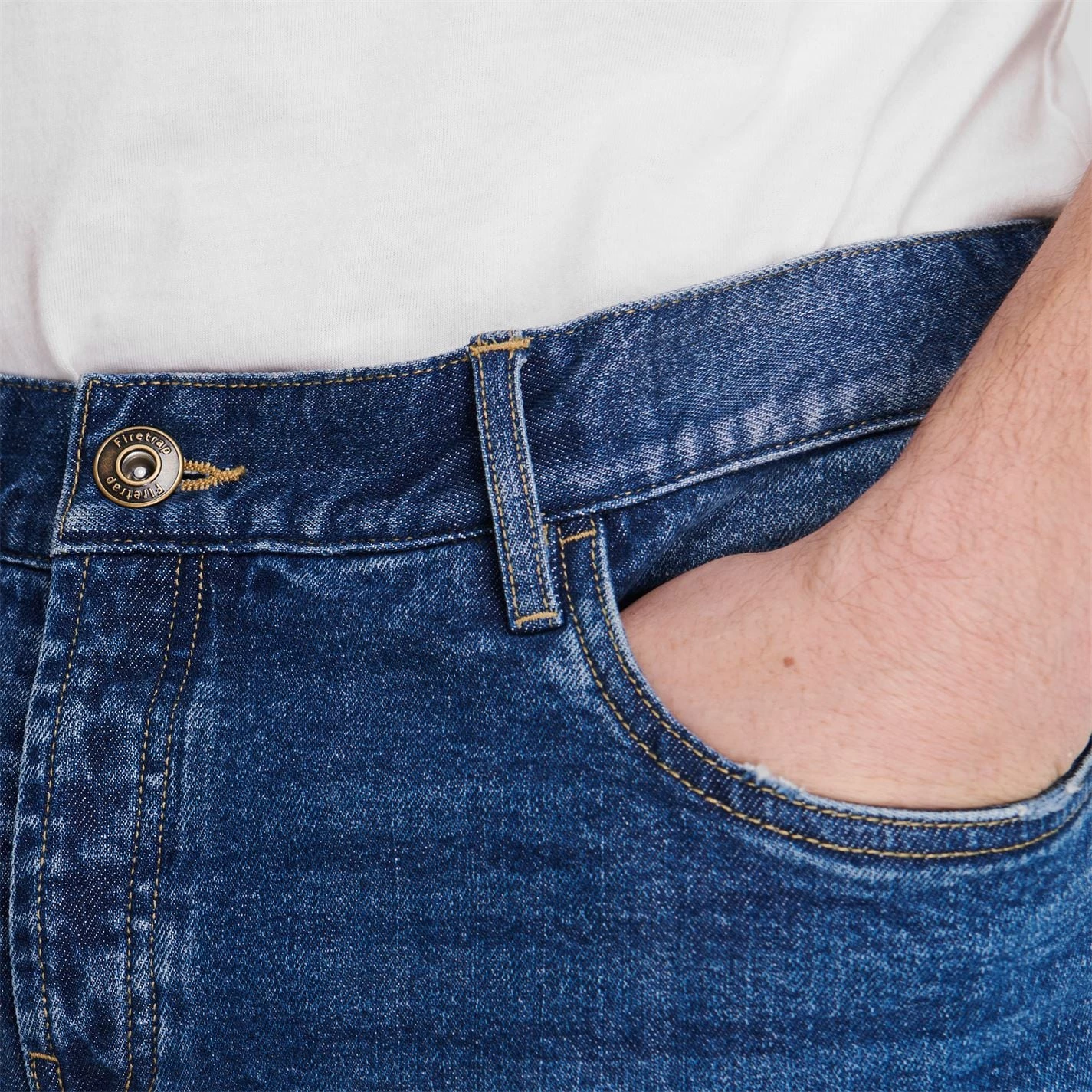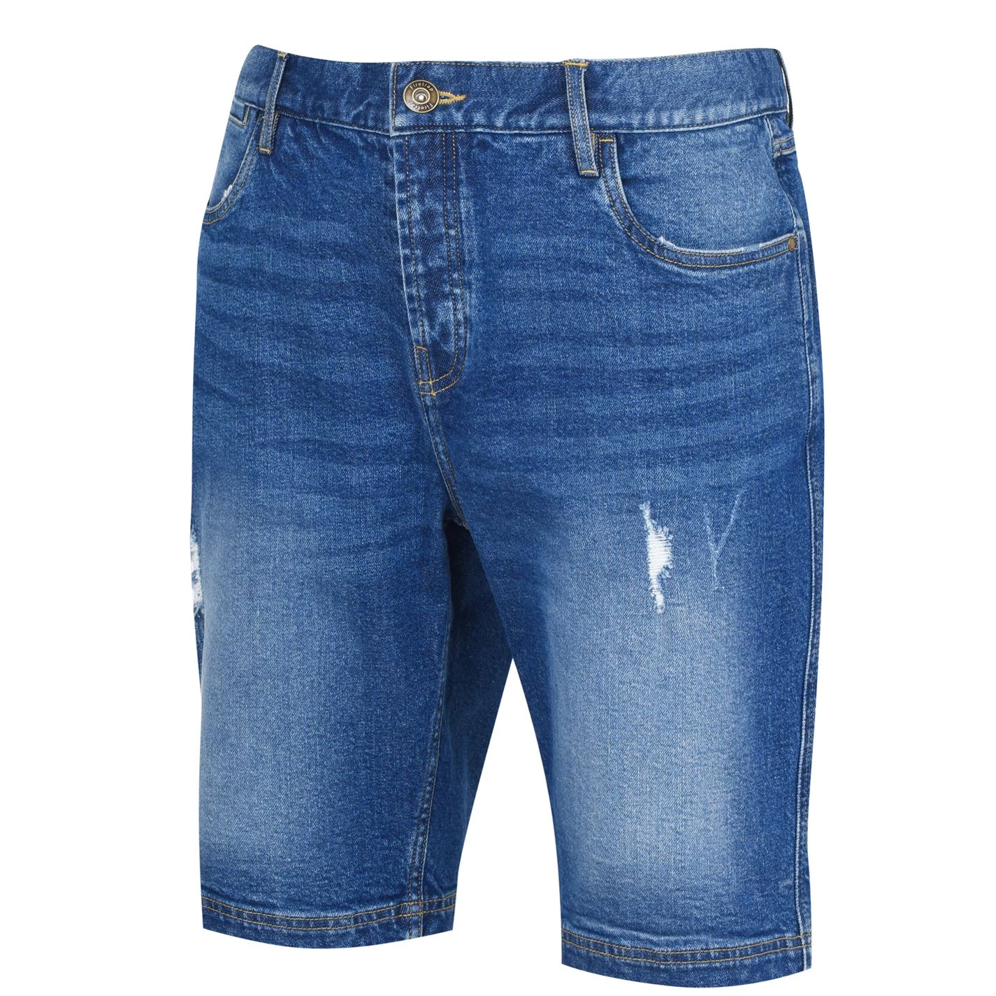 Add to your casual collection this summer with the Firetrap Denim Shorts. Crafted with a bonded waistband, belt loops and a 5 pocket design. Complete with a zip fly closure for a classic look, this pair are finished with contrasting stitching and rolled up hems. You do not want to miss out on this one.