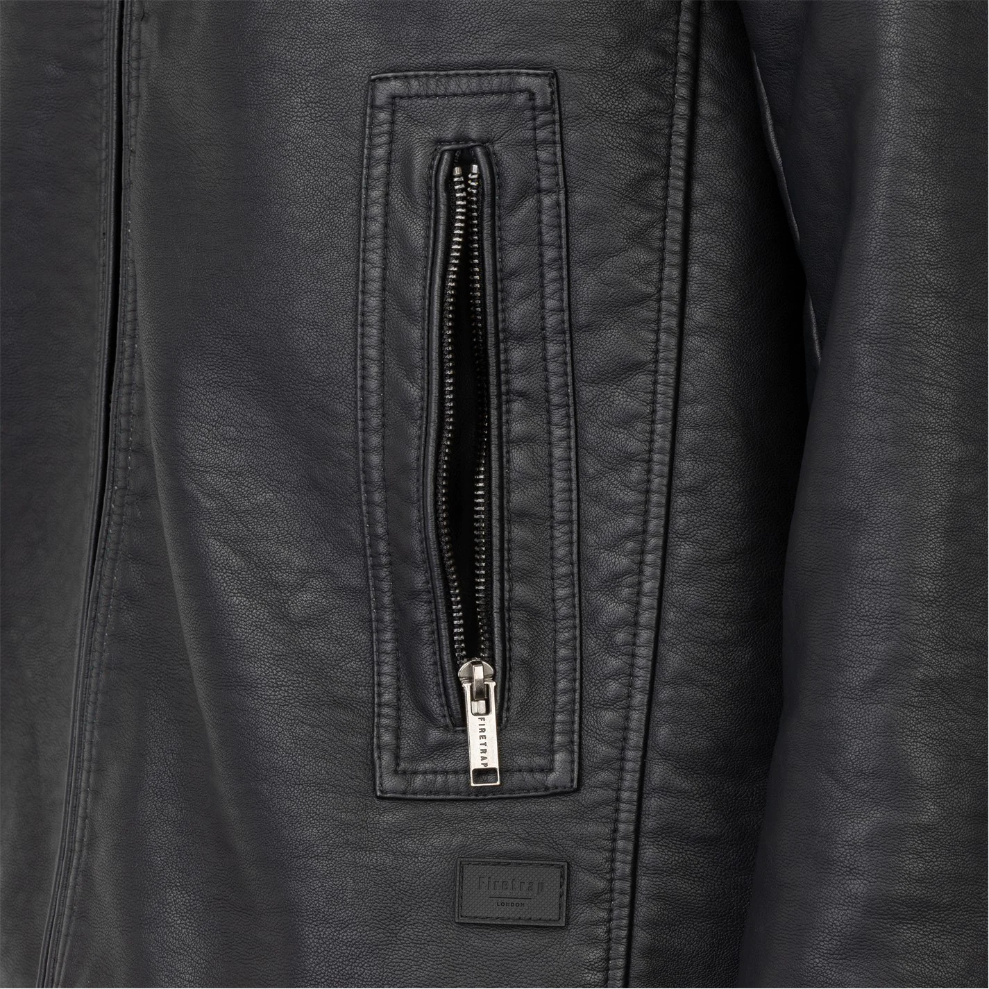 The Mens Firetrap PU Jacket offers a simple but stylish look with tonal stitched panels to the shoulders along with a full zip fastening front for a comfortable fit, four zip fastening pockets and the Firetrap branding complete the look.