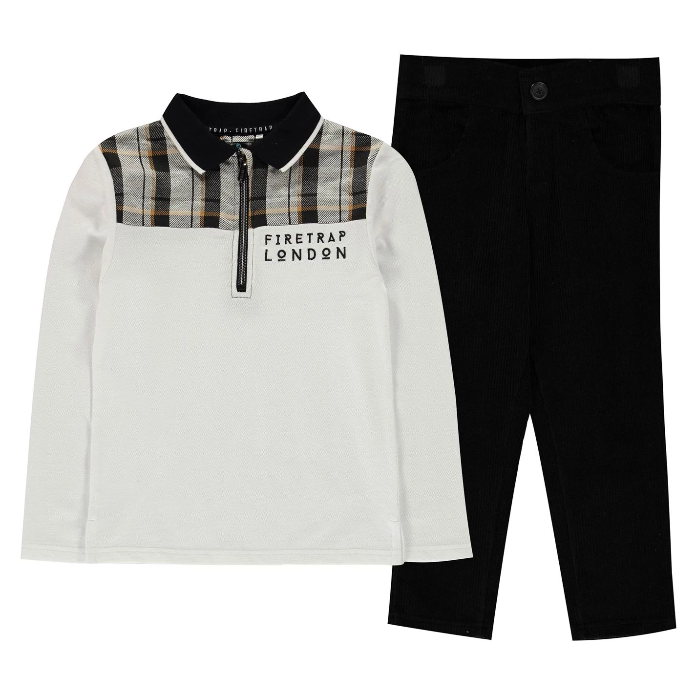 Add a cute touch to his wardrobe with this Firetrap Two Piece Trouser Set Infant Boys, with this long sleeve polo shirt and trouser set. It is perfect for everyday wear thanks to delightfully soft fabrics that promise all-day comfort. The look is completed with printed Firetrap London branding throughout.